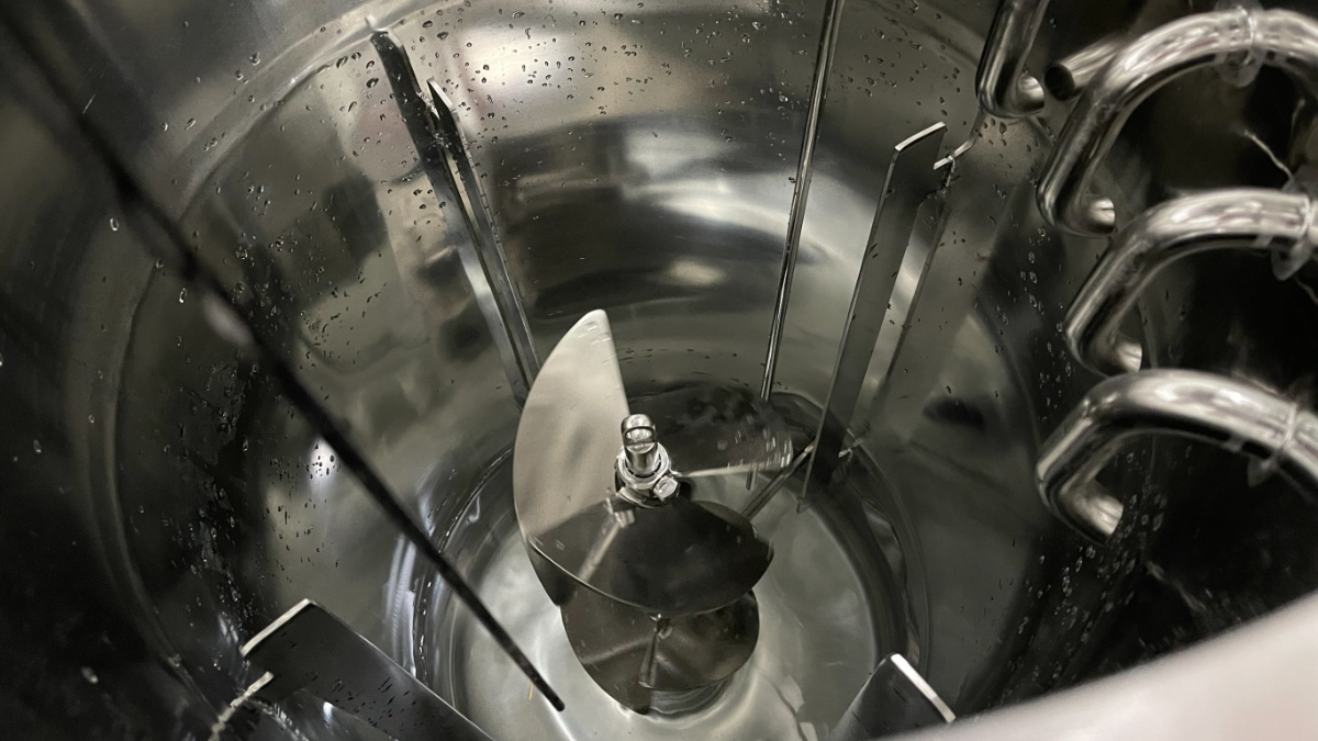 P/V 为单位体积功率(P 为搅拌功率,V 为罐体体积),该准则假设维持单位体积的混合能量不变,即可保证微观混合环境与剪切速率分布的相似性。根据功率与转速、尺寸的关联式(P∝n³d⁵,V∝d³),推导得转速放大关系:n₂=n₁・(d₁/d₂)^(2/3)(d 为搅拌桨直径)。